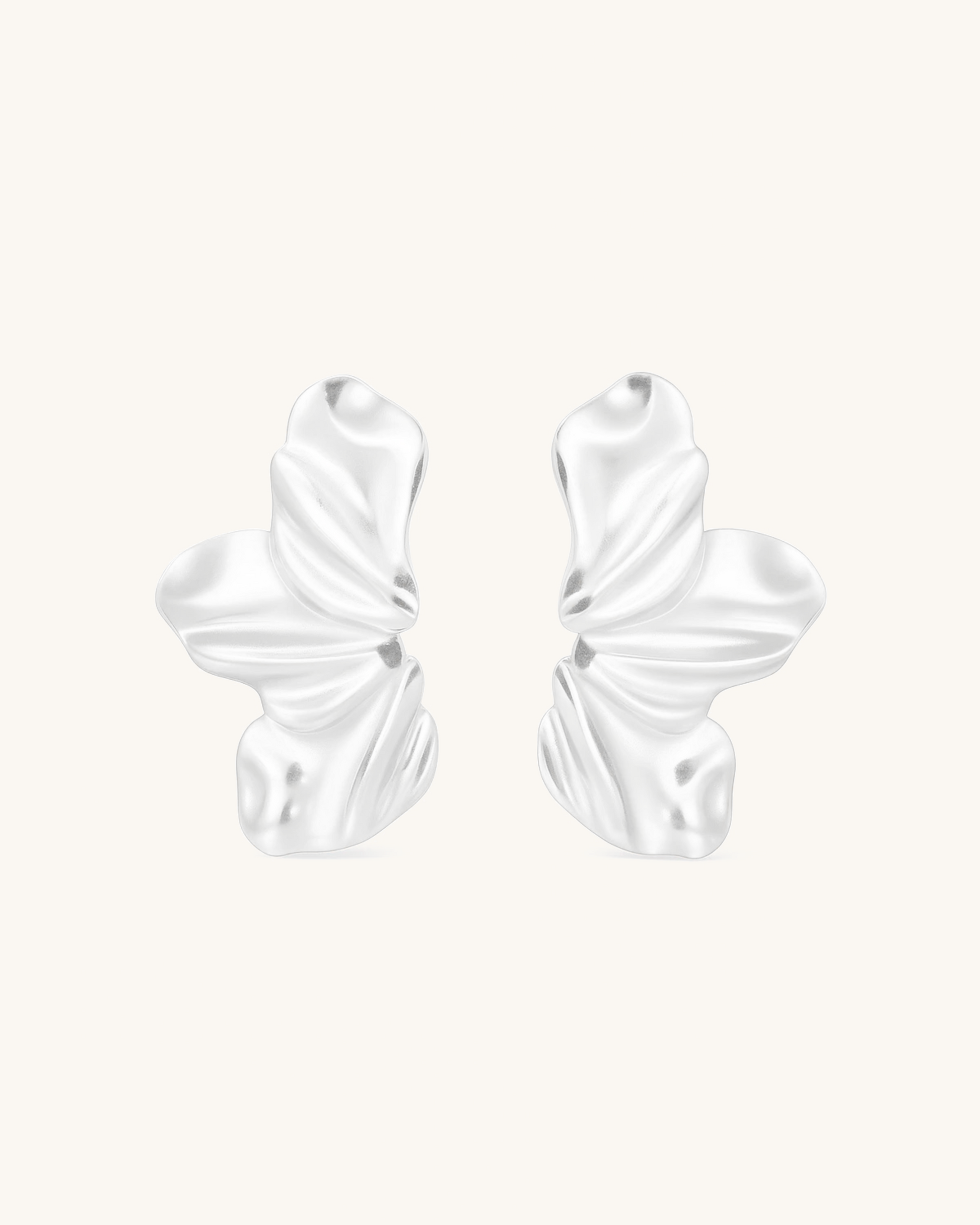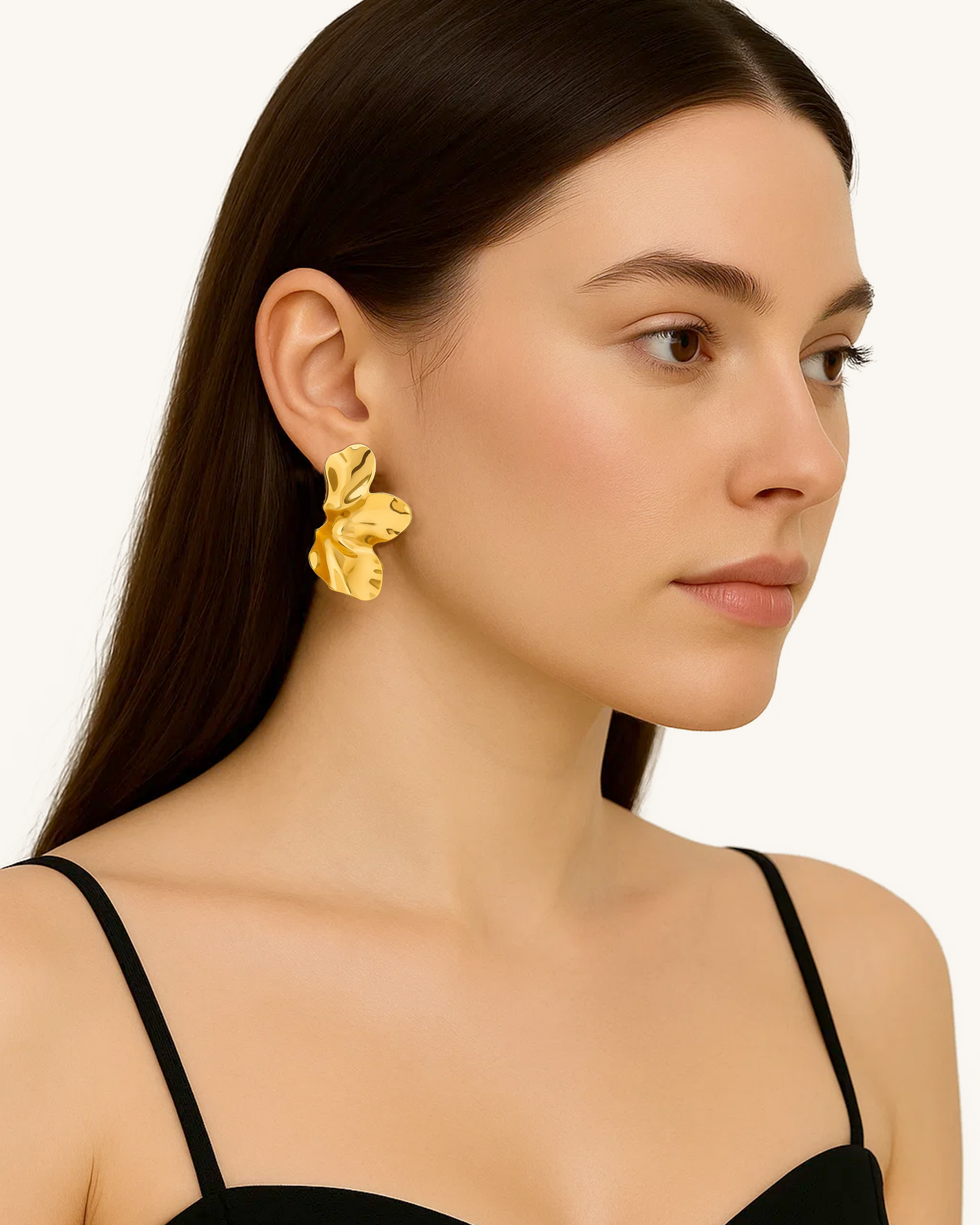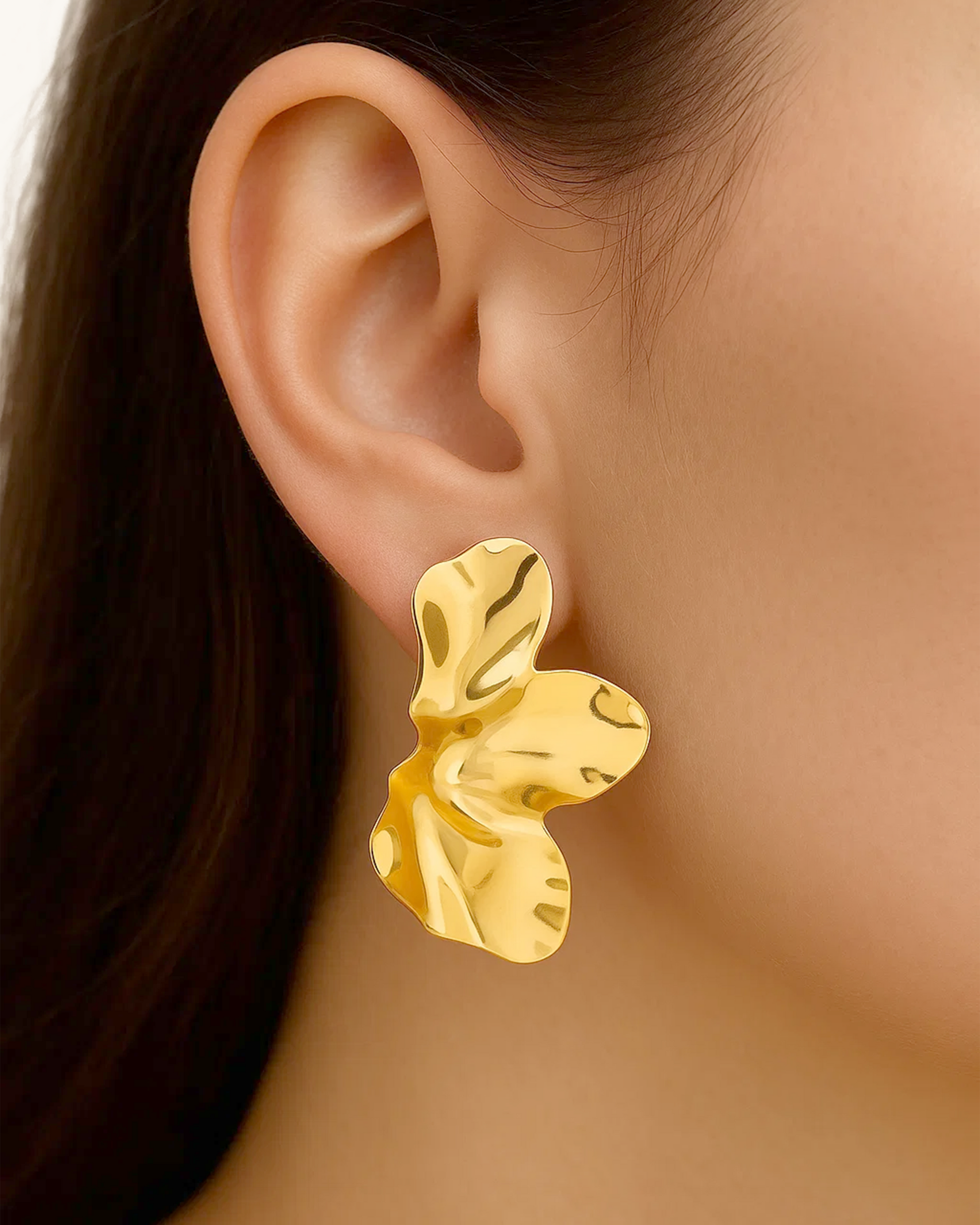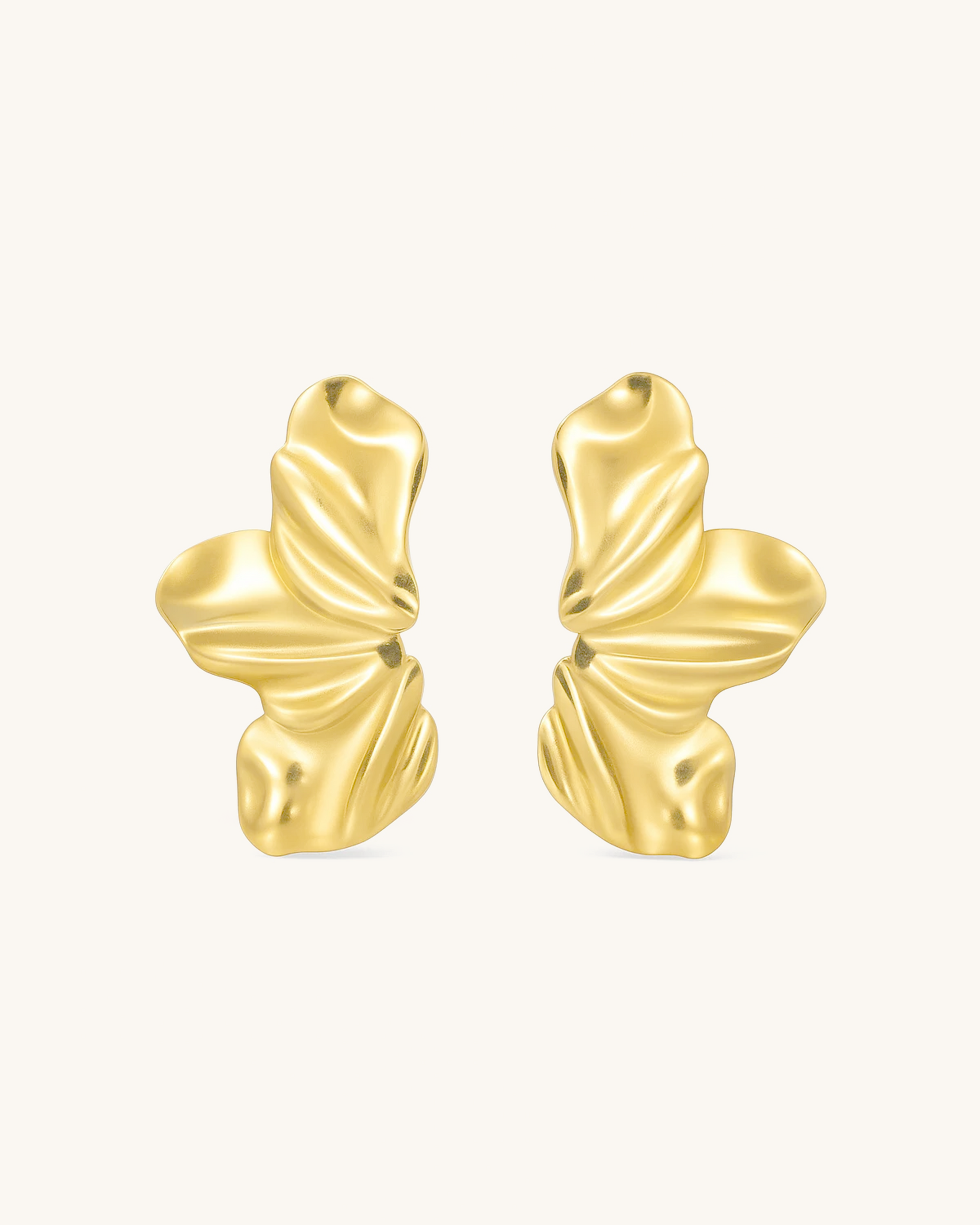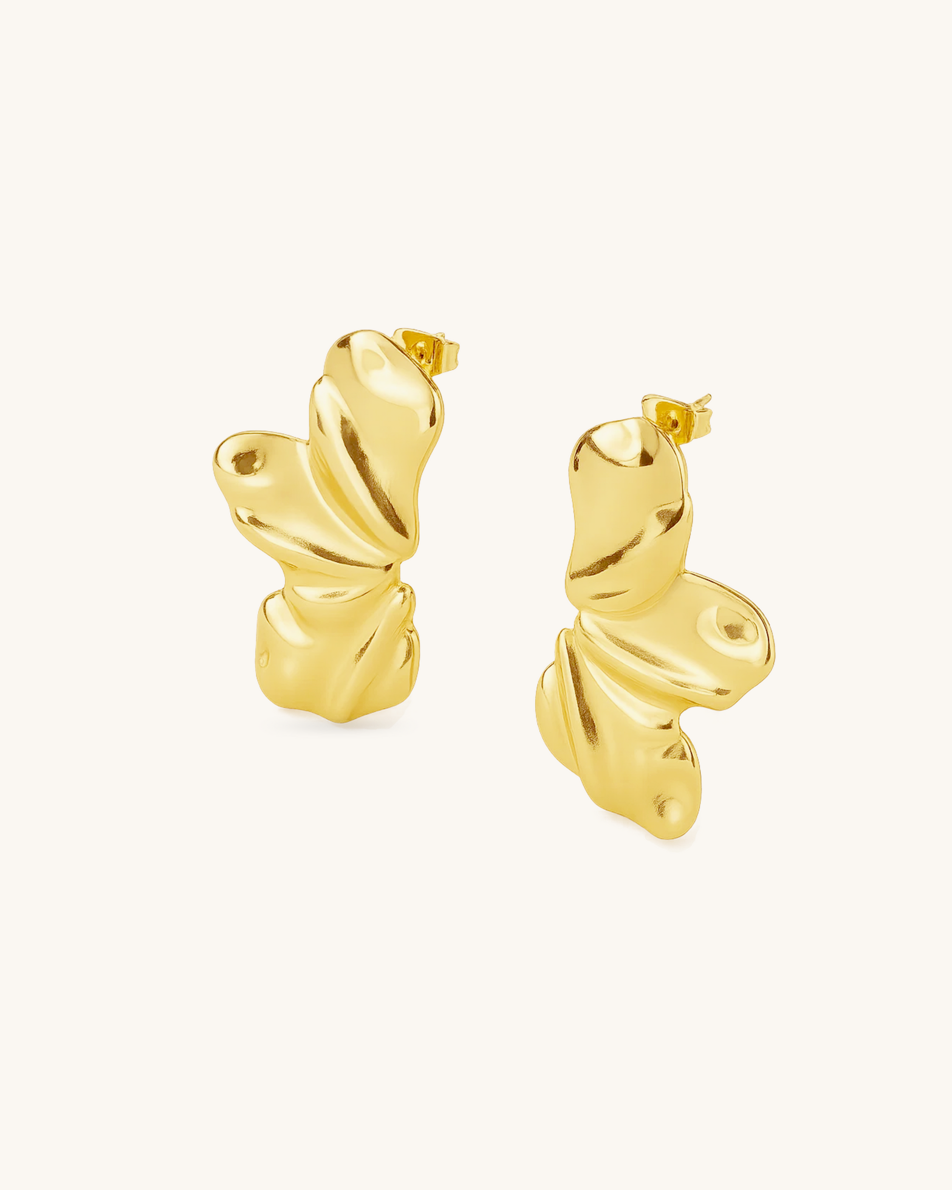 Sculptural and expressive, the Abstract Petal Stud Earrings feature a flowing floral silhouette with smooth, high-shine folds that reflect light from every angle. Inspired by nature but shaped with an artistic twist, these waterproof stainless steel earrings are plated in 18K gold for a bold yet elegant finish—perfect for elevating your everyday or occasion looks.
