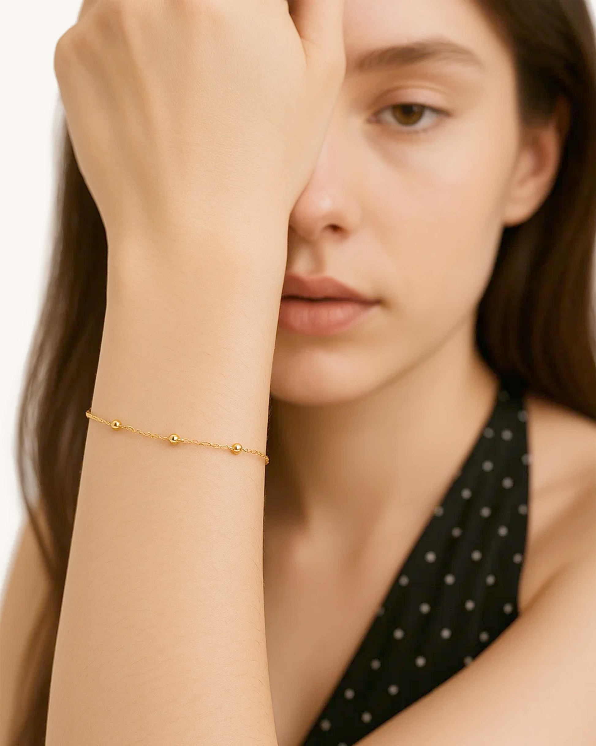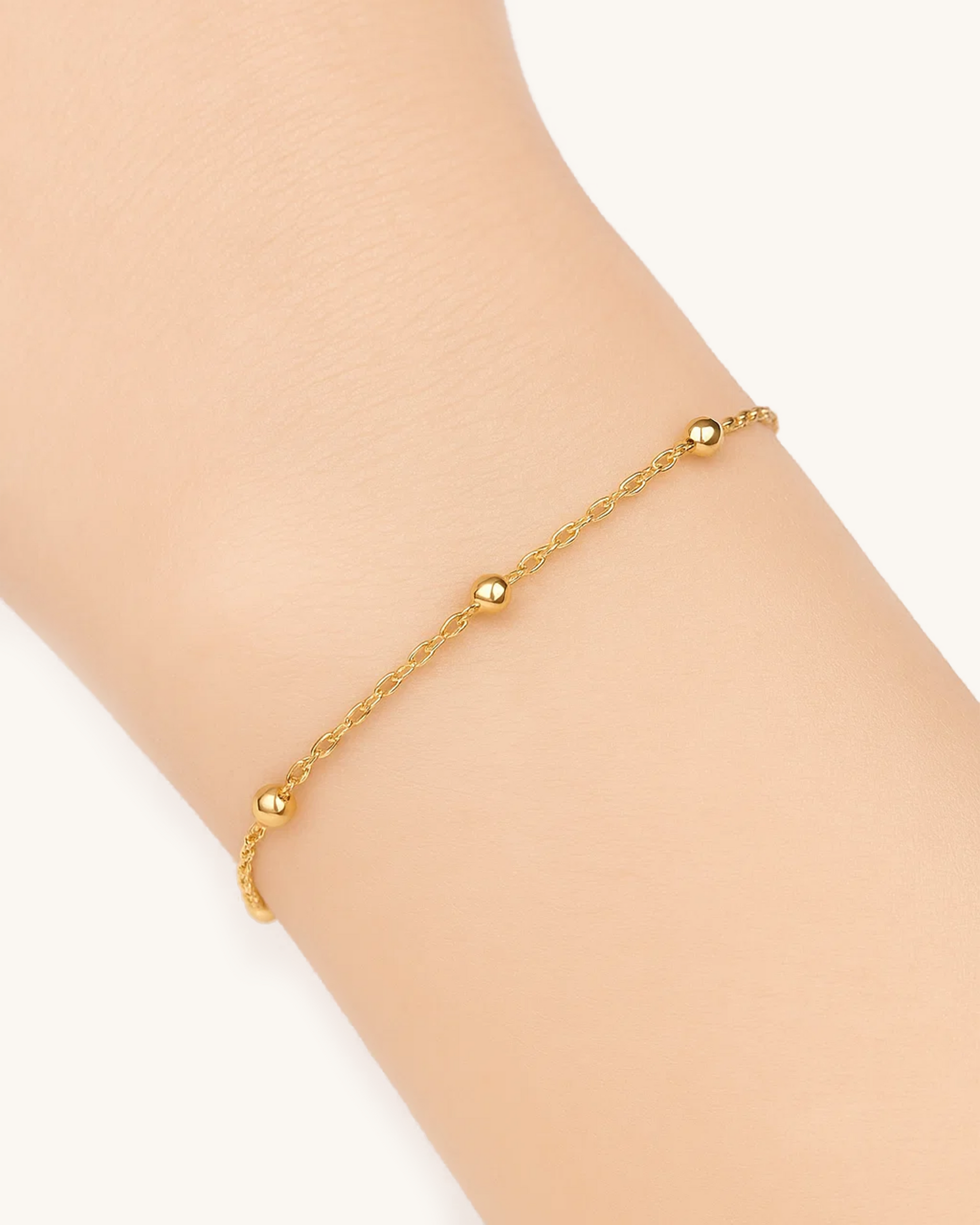Delicate and timeless, the Beaded Dot Chain Bracelet features a minimalist chain accented with evenly spaced polished beads for a clean, modern finish. Crafted from waterproof stainless steel and available in 18K gold or silver tone, this piece is perfect for layering or wearing solo as a subtle daily essential.