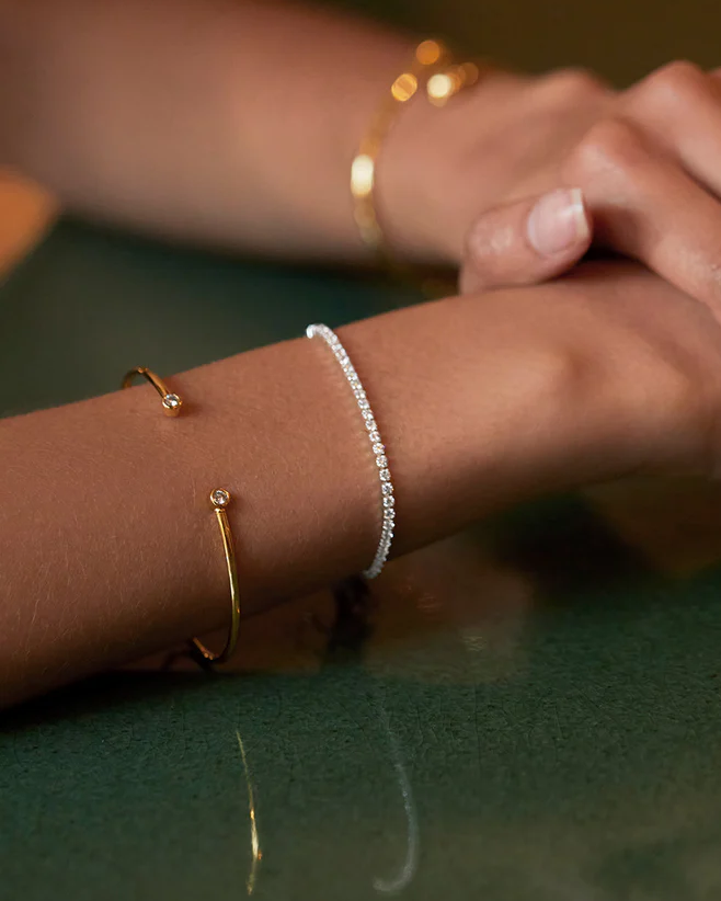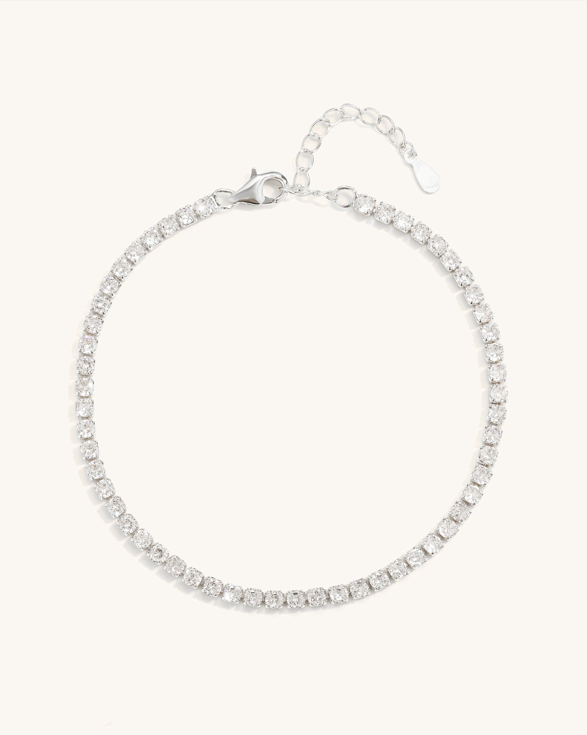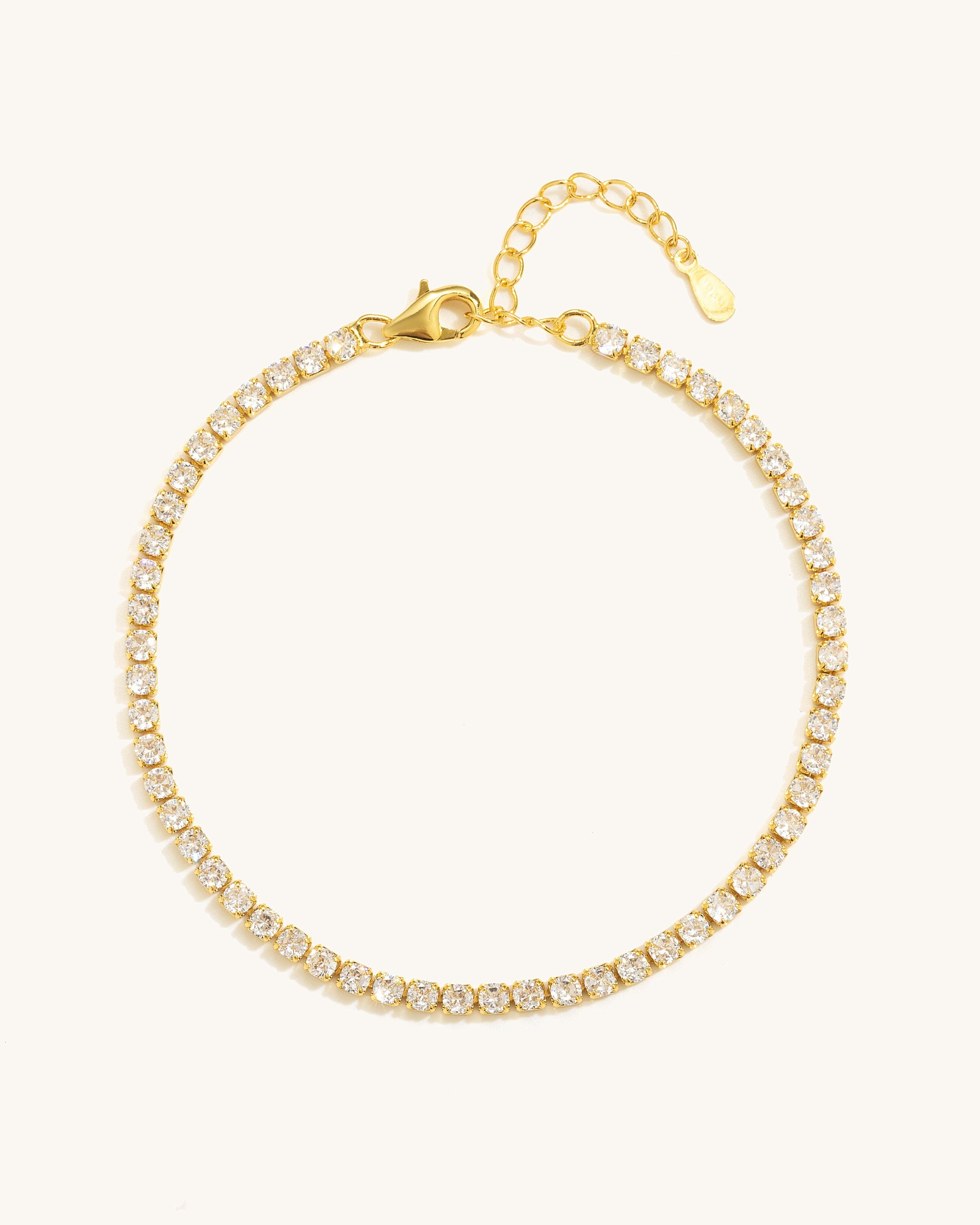 Timeless and elegant, the Classic Tennis Bracelet is crafted from premium 925 sterling silver and adorned with brilliant 2.5mm round-cut cubic zirconia stones. It is available in two luxurious finishes: pure sterling silver or 18K gold vermeil. Gold vermeil means a thick layer of real 18K gold over solid sterling silver, offering both durability and a rich, lasting shine. Whether worn alone or layered with other pieces, this bracelet adds effortless sparkle to any look and is a must-have for every jewelry collection.