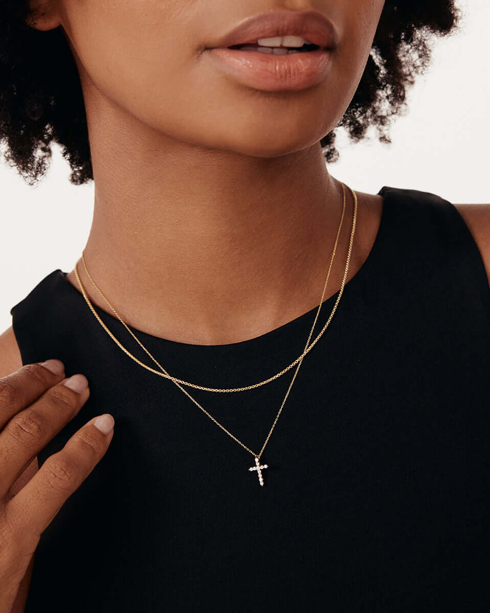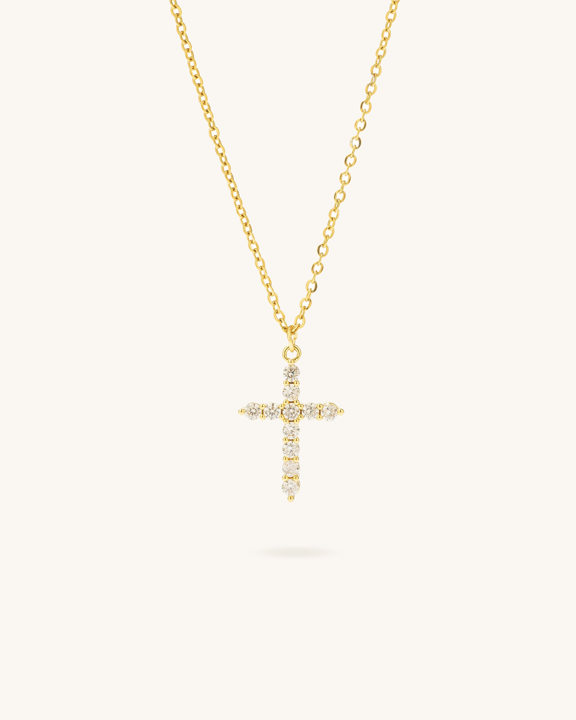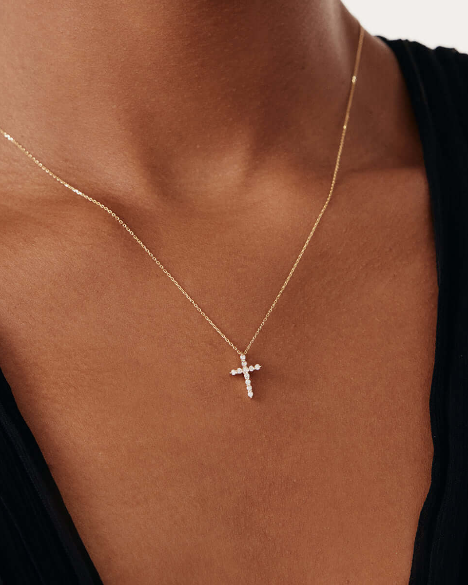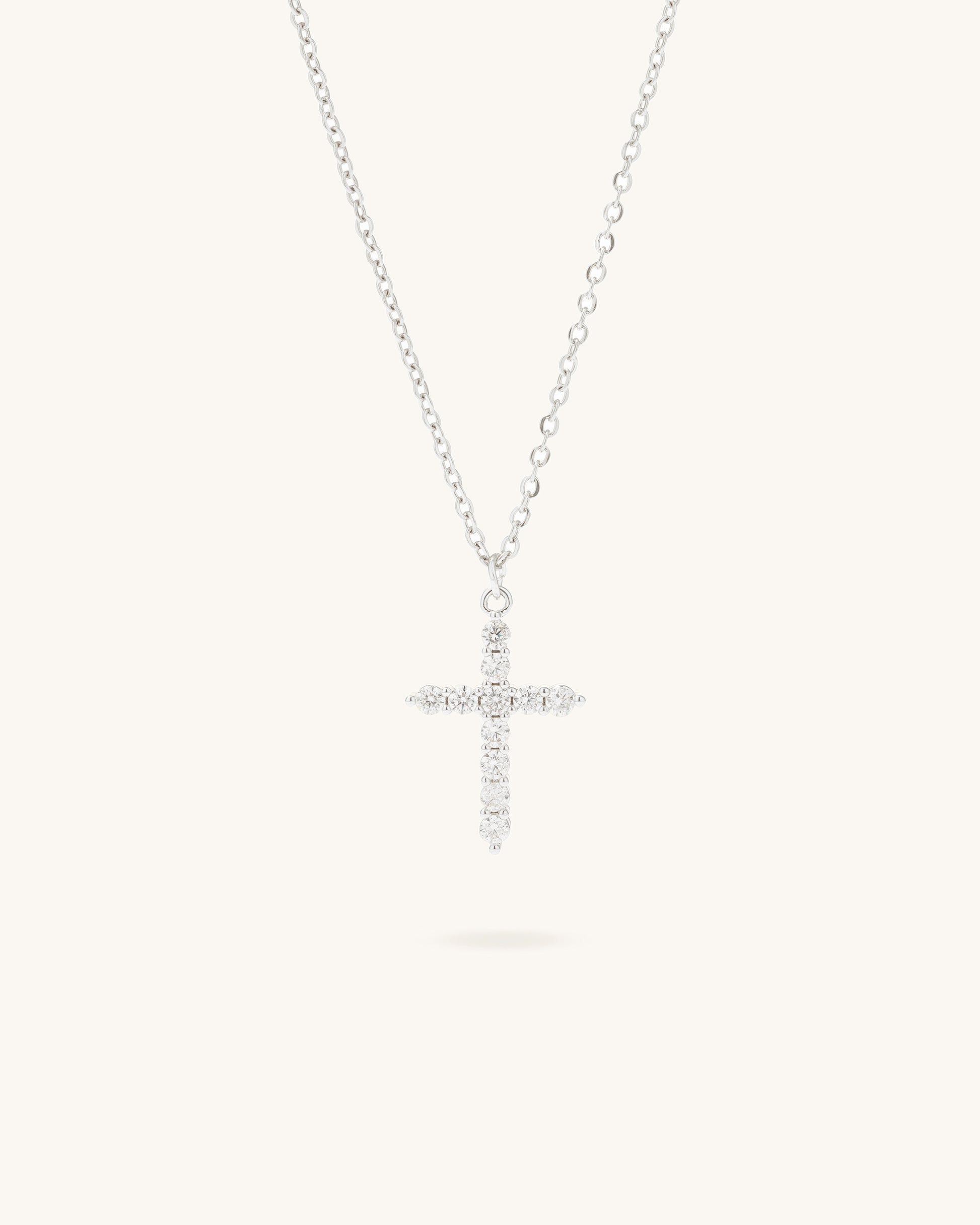 A timeless symbol of faith and elegance, the Cross Pendant Necklace features brilliant cubic zirconia stones meticulously set on a delicate chain. Perfect for layering or wearing solo for a classic, refined look.
