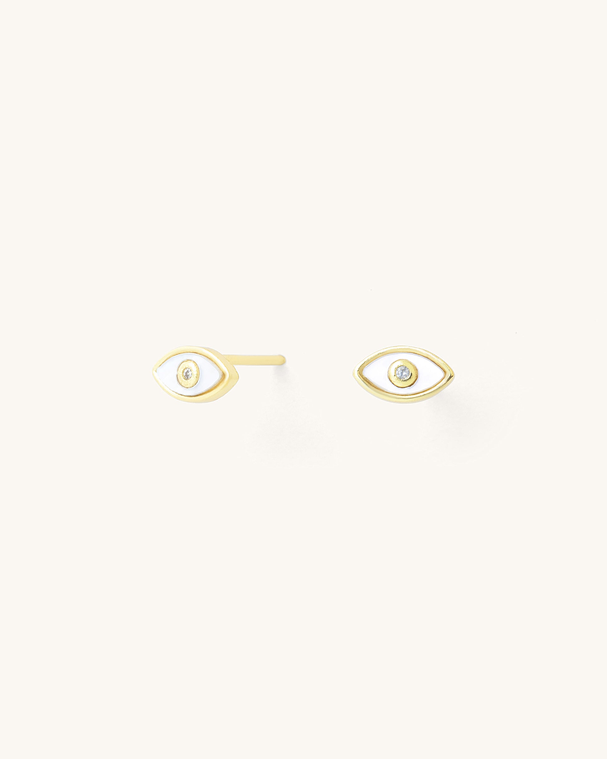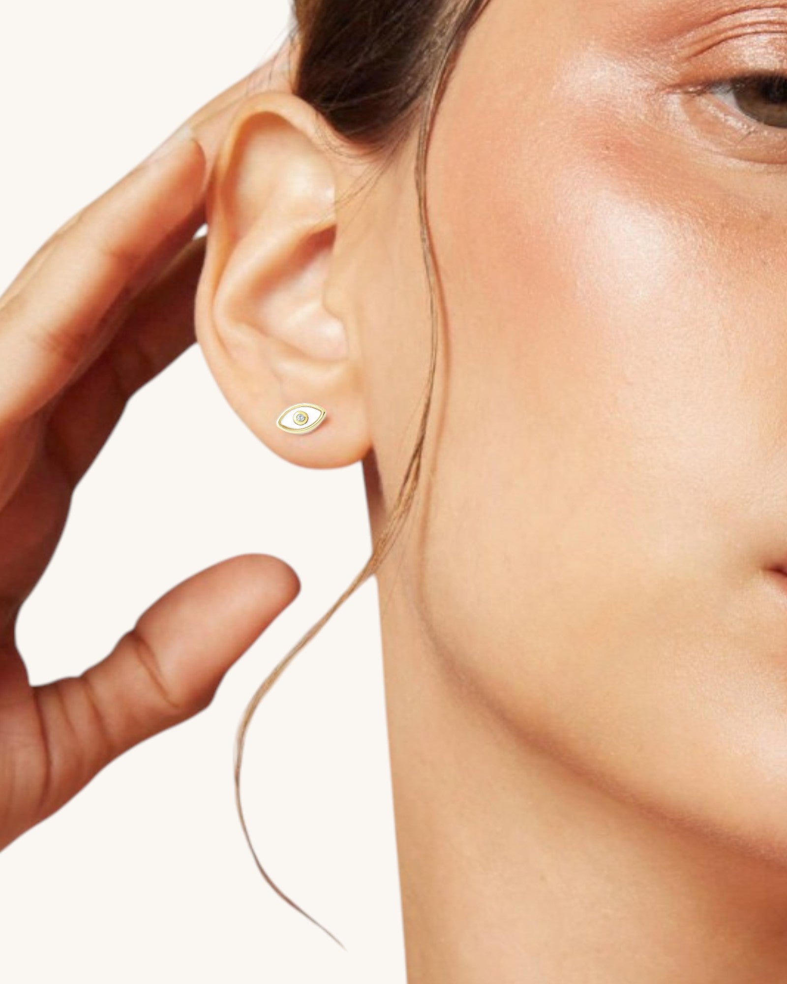 Simple yet symbolic, the Demon Eye Shape Studs feature a sleek eye-shaped design accented with a sparkling center stone. A minimalist piece perfect for everyday protection and effortless style.