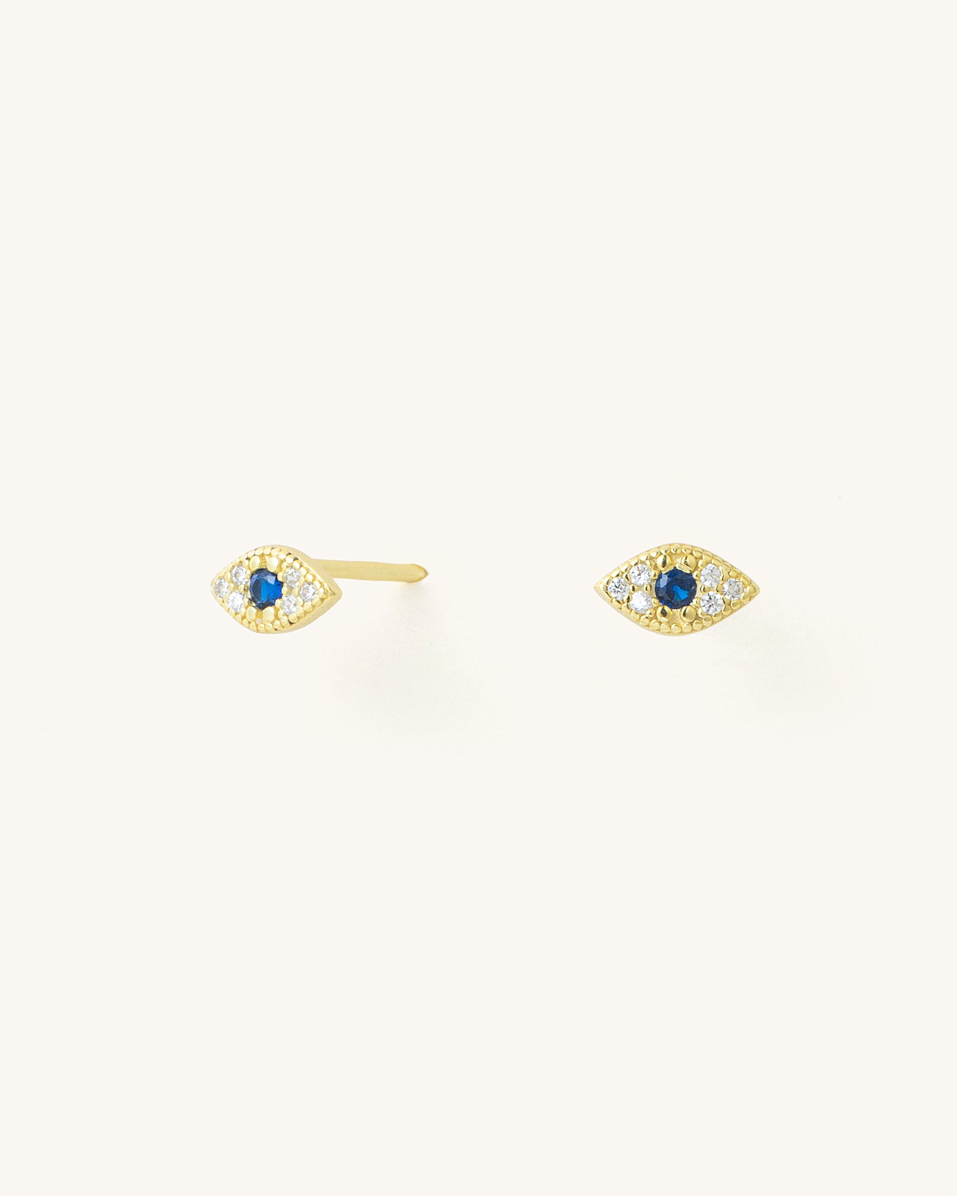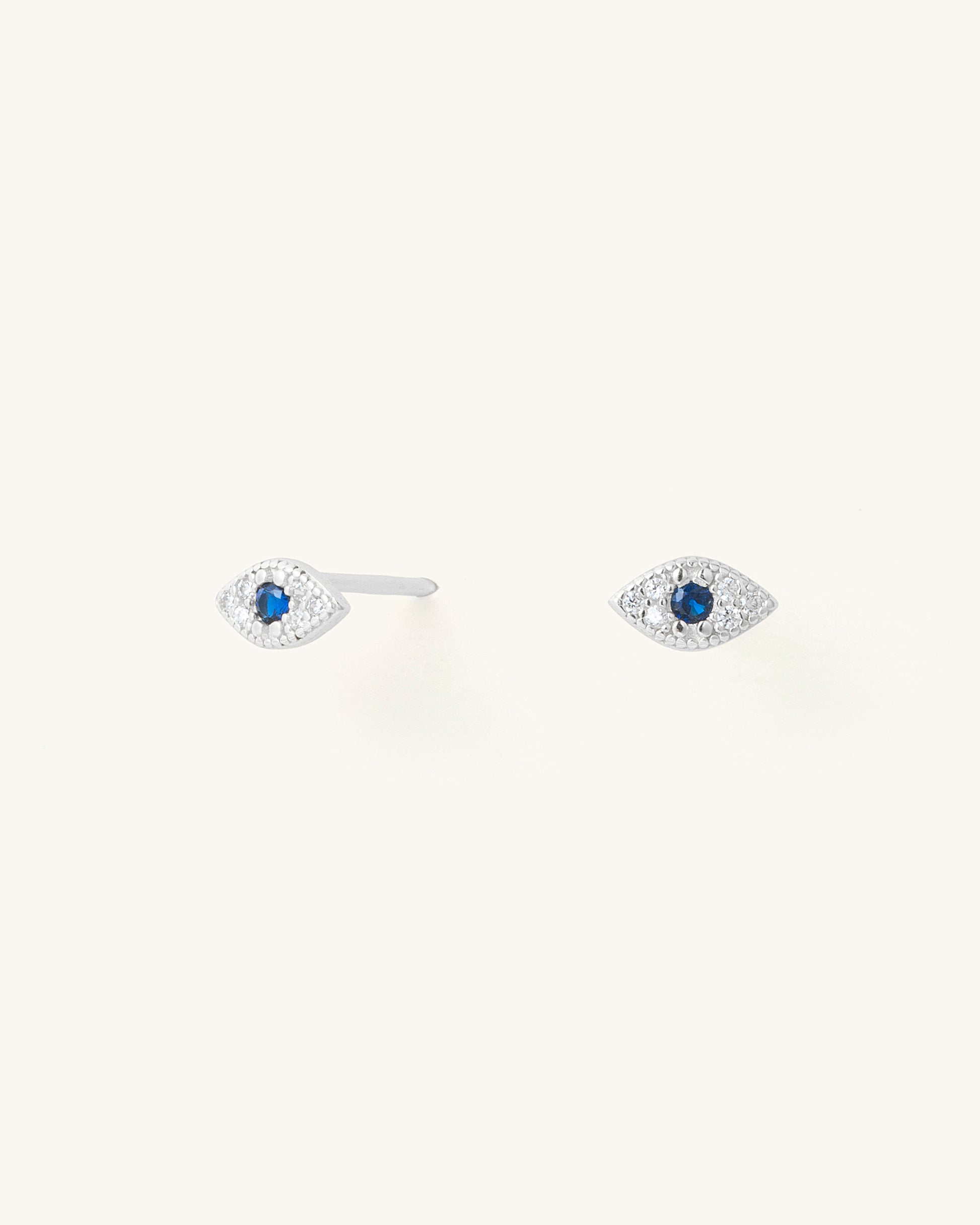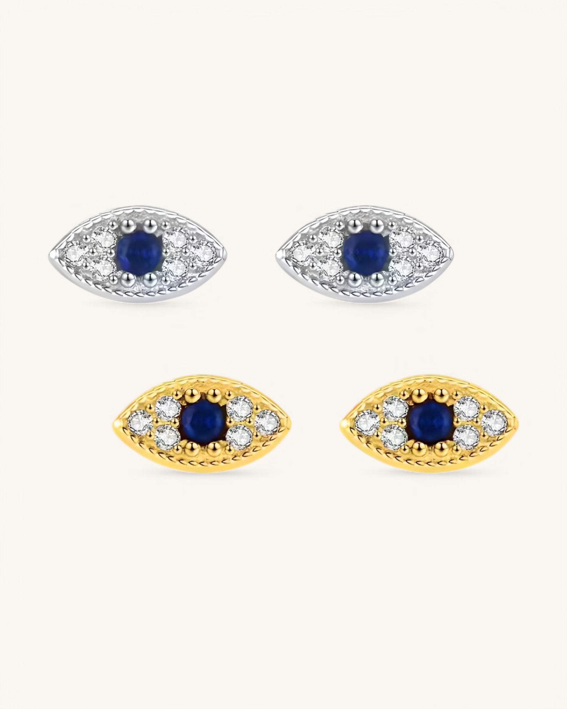 Elegant with a touch of texture, the Textured Eye Studs feature a sculpted eye-shaped design with sparkling blue and white stones. A perfect blend of classic symbolism and modern sophistication.