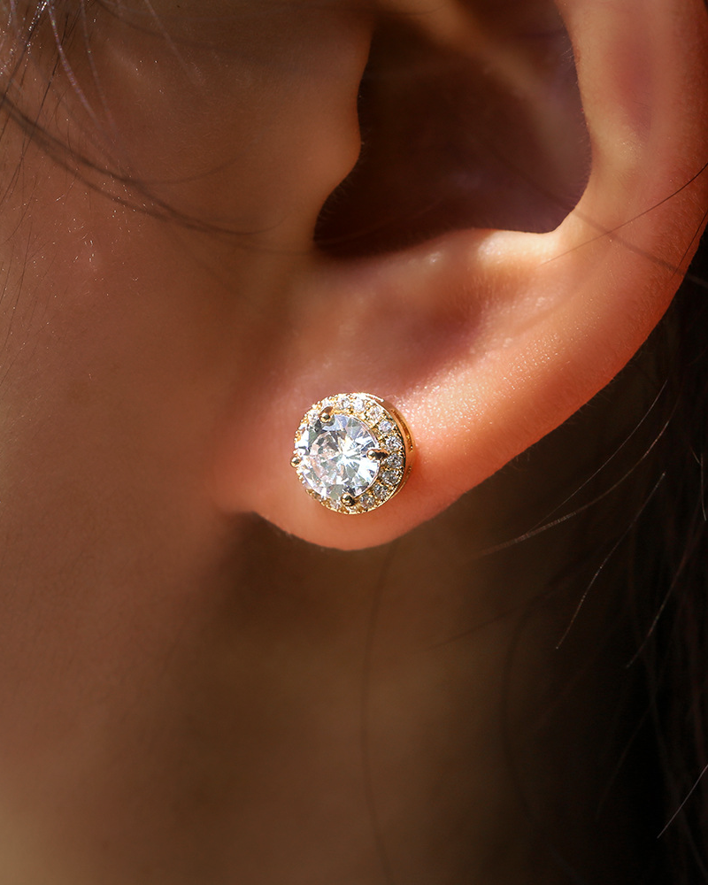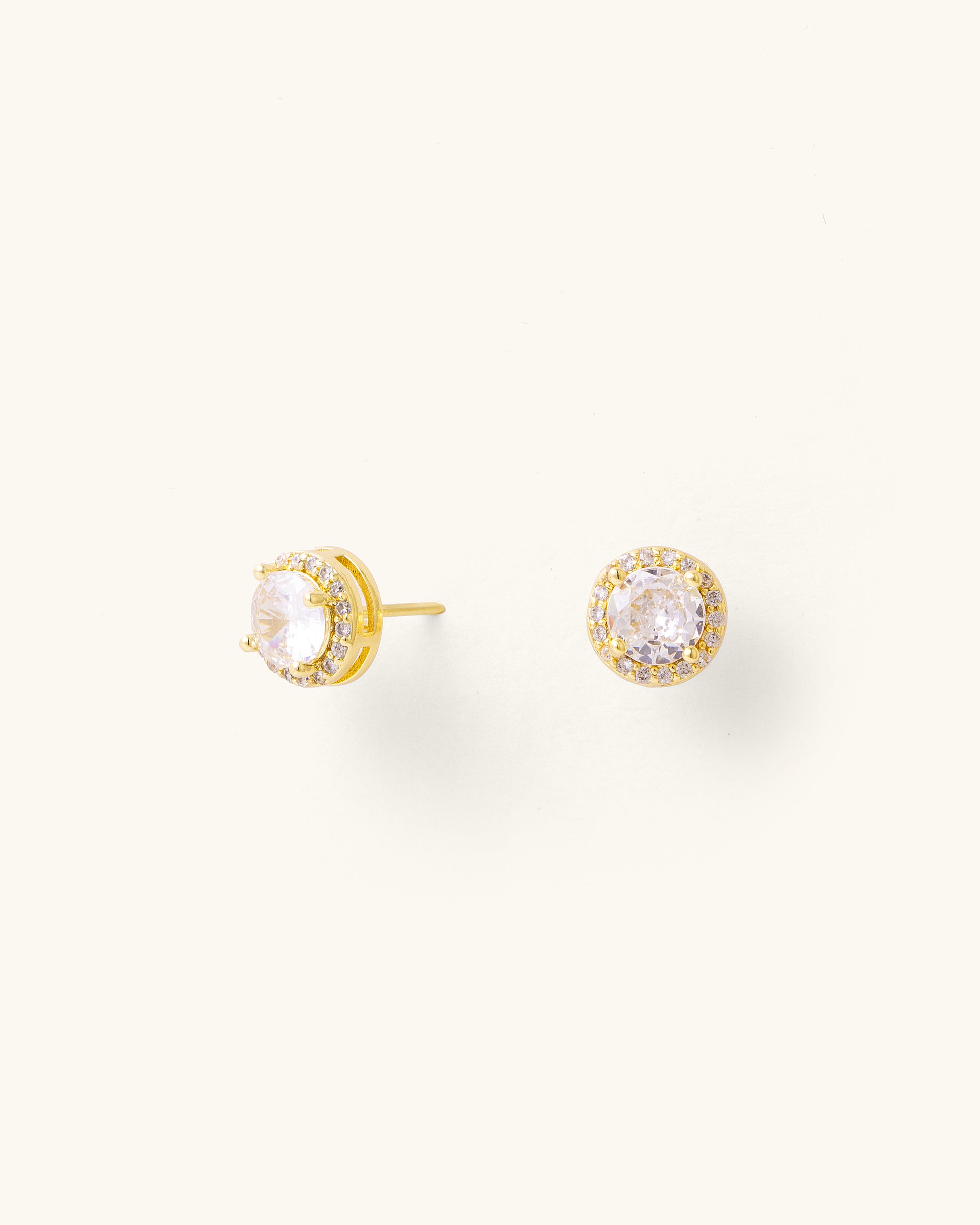 Timeless and brilliant, the Halo Stud Earrings feature a dazzling center stone surrounded by a delicate halo of pavé-set cubic zirconia. Crafted with a high-polish gold or silver plating over copper, these studs deliver classic elegance and effortless sparkle, perfect for everyday wear or special occasions.