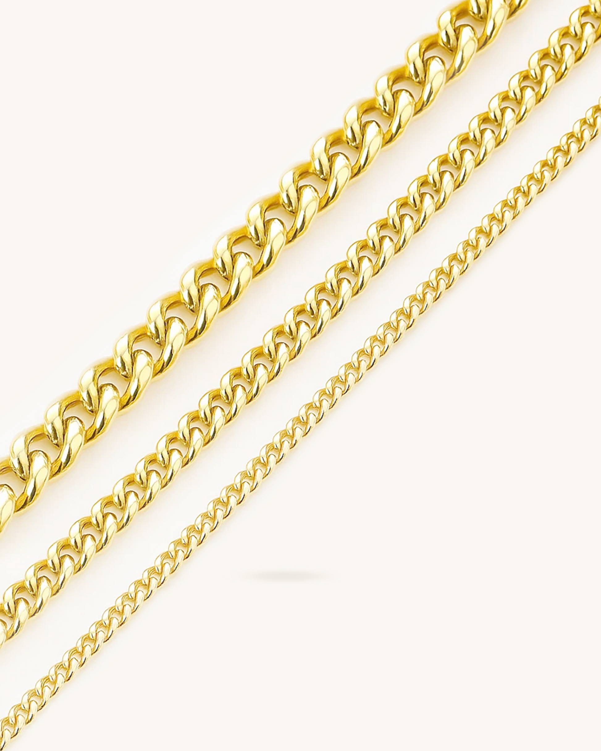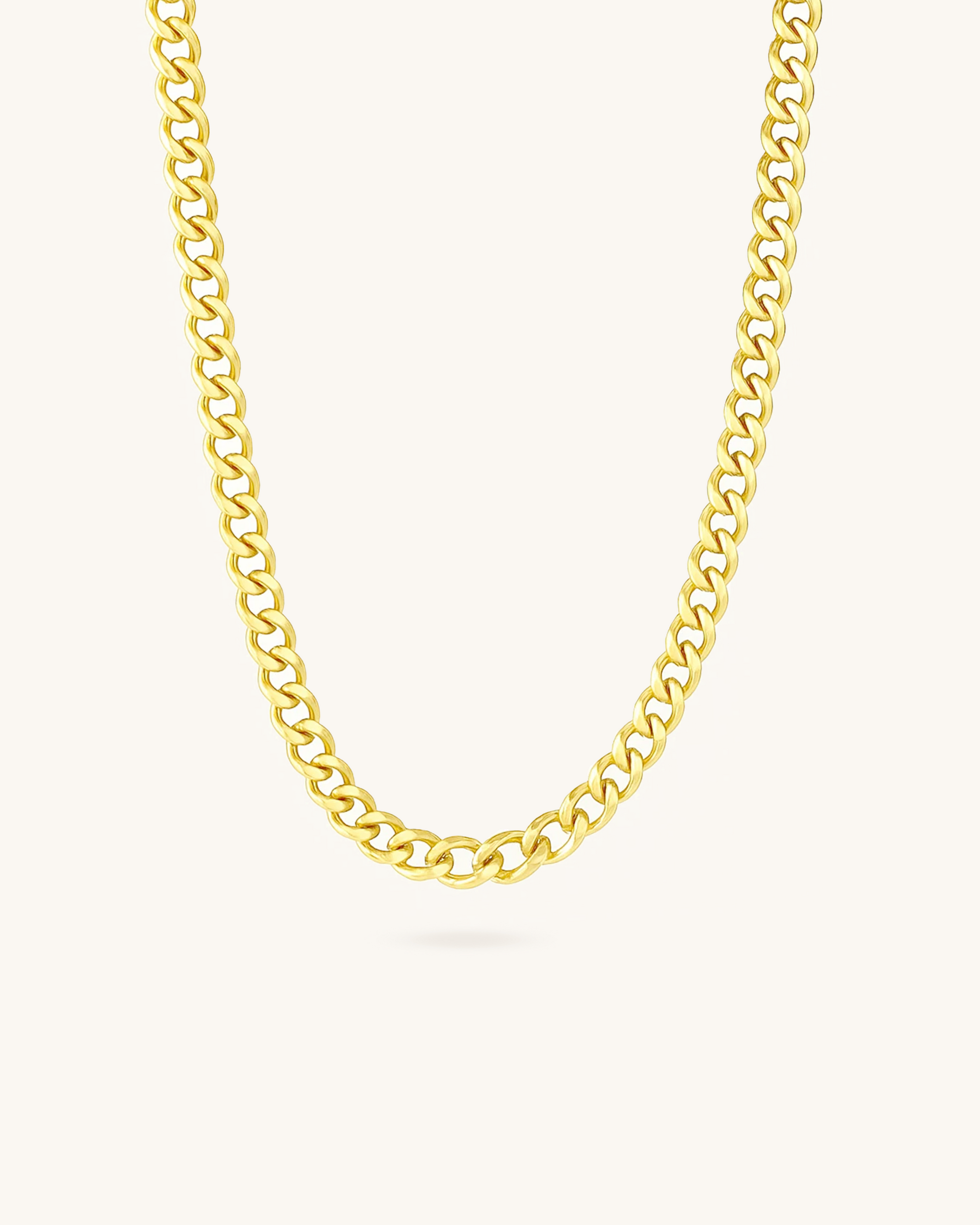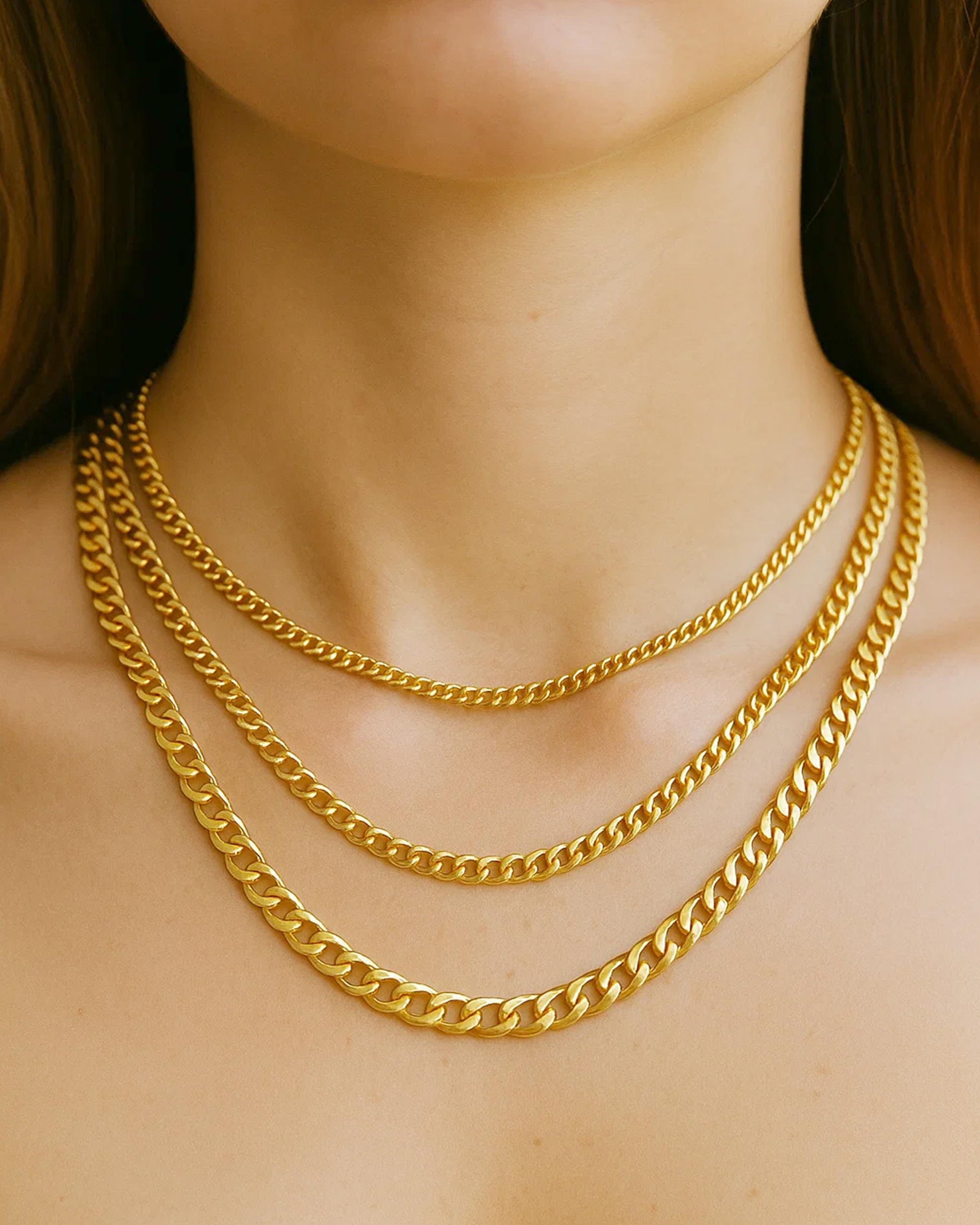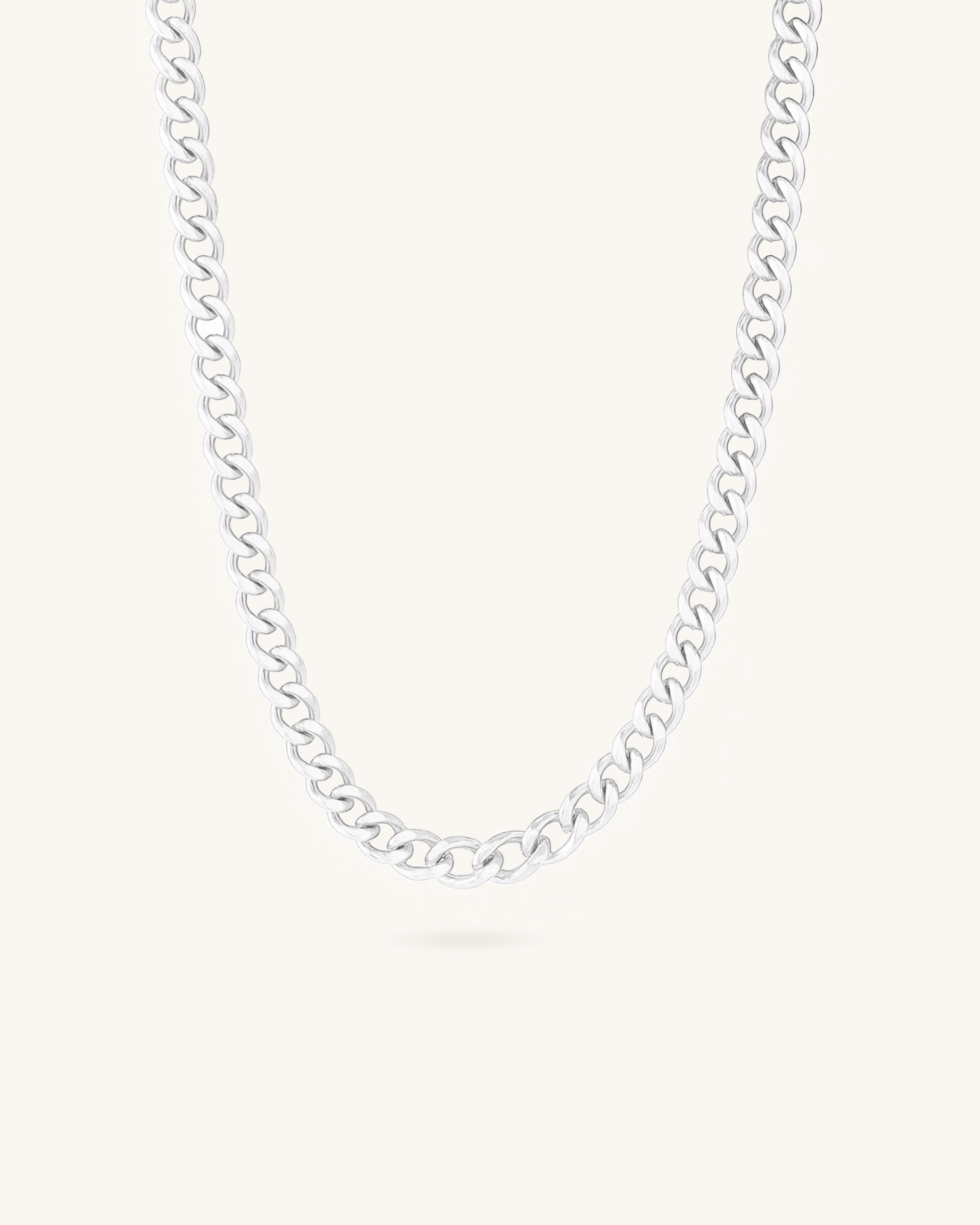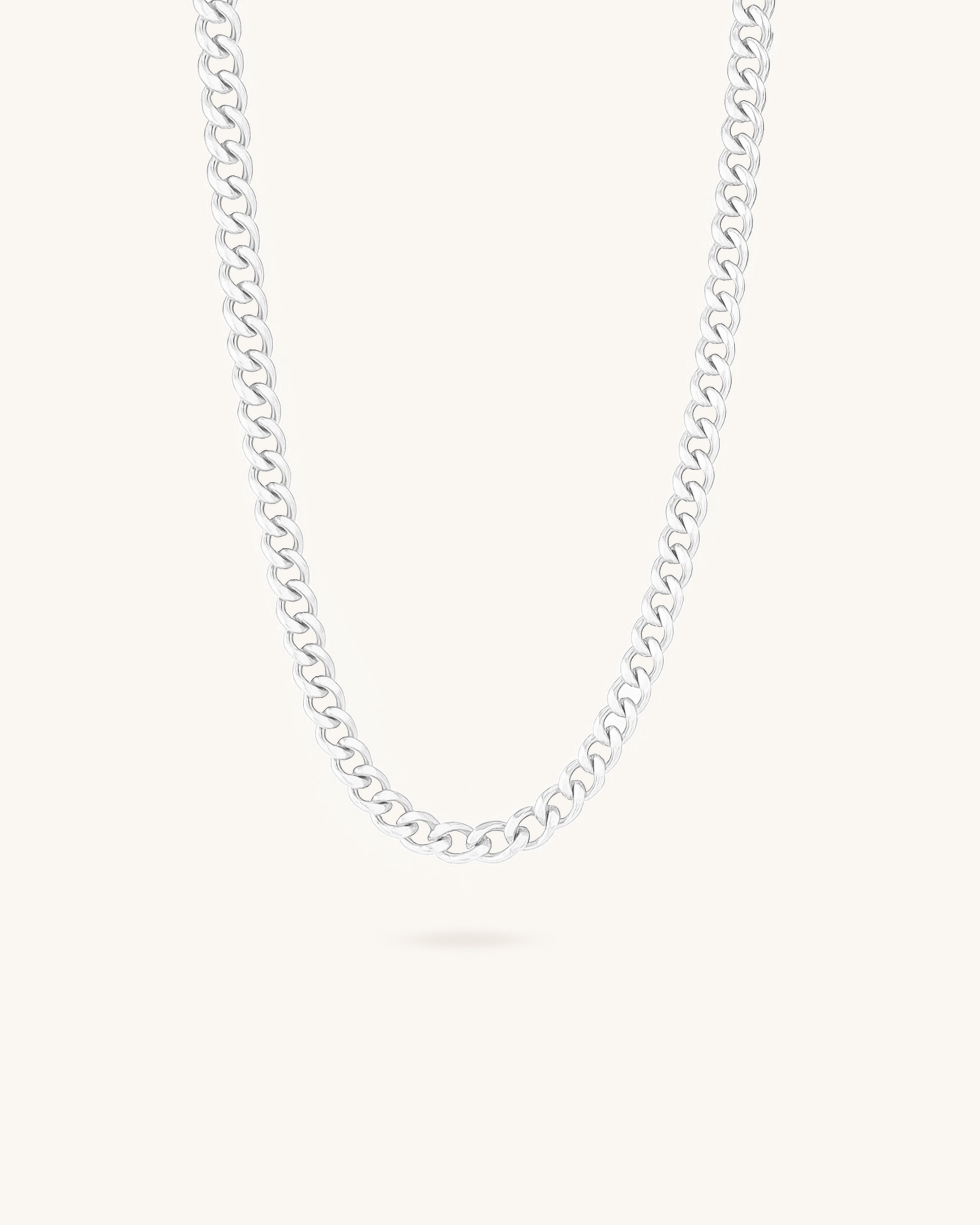 Timeless and bold, the Link Chain Necklace features flat, interlocking curb-style links in a sleek waterproof finish. Available in 18K gold plating or stainless steel silver, and offered in three thicknesses (3mm, 5mm, 7mm), it’s the perfect chain for layering, stacking, or wearing solo with effortless edge. Designed for both men and women.