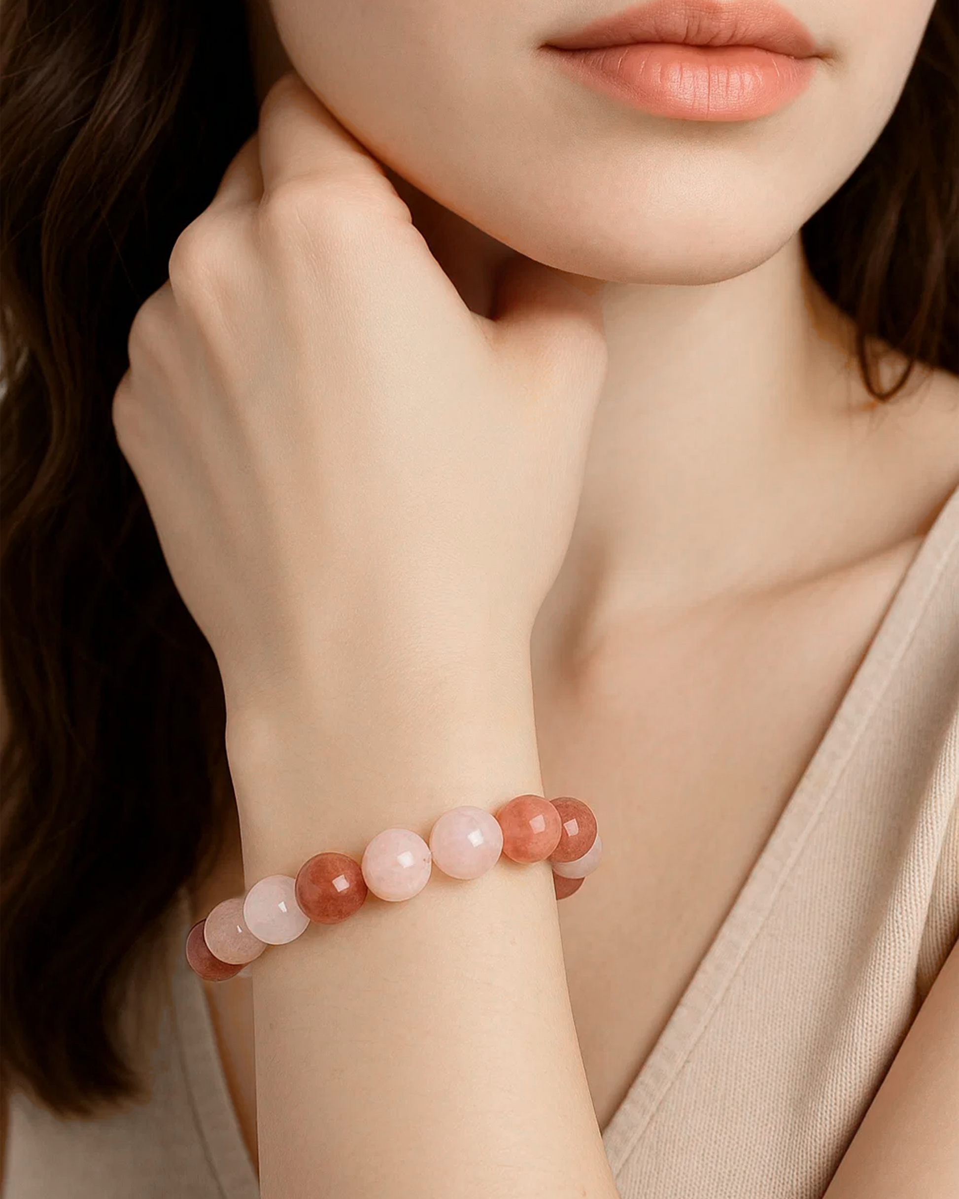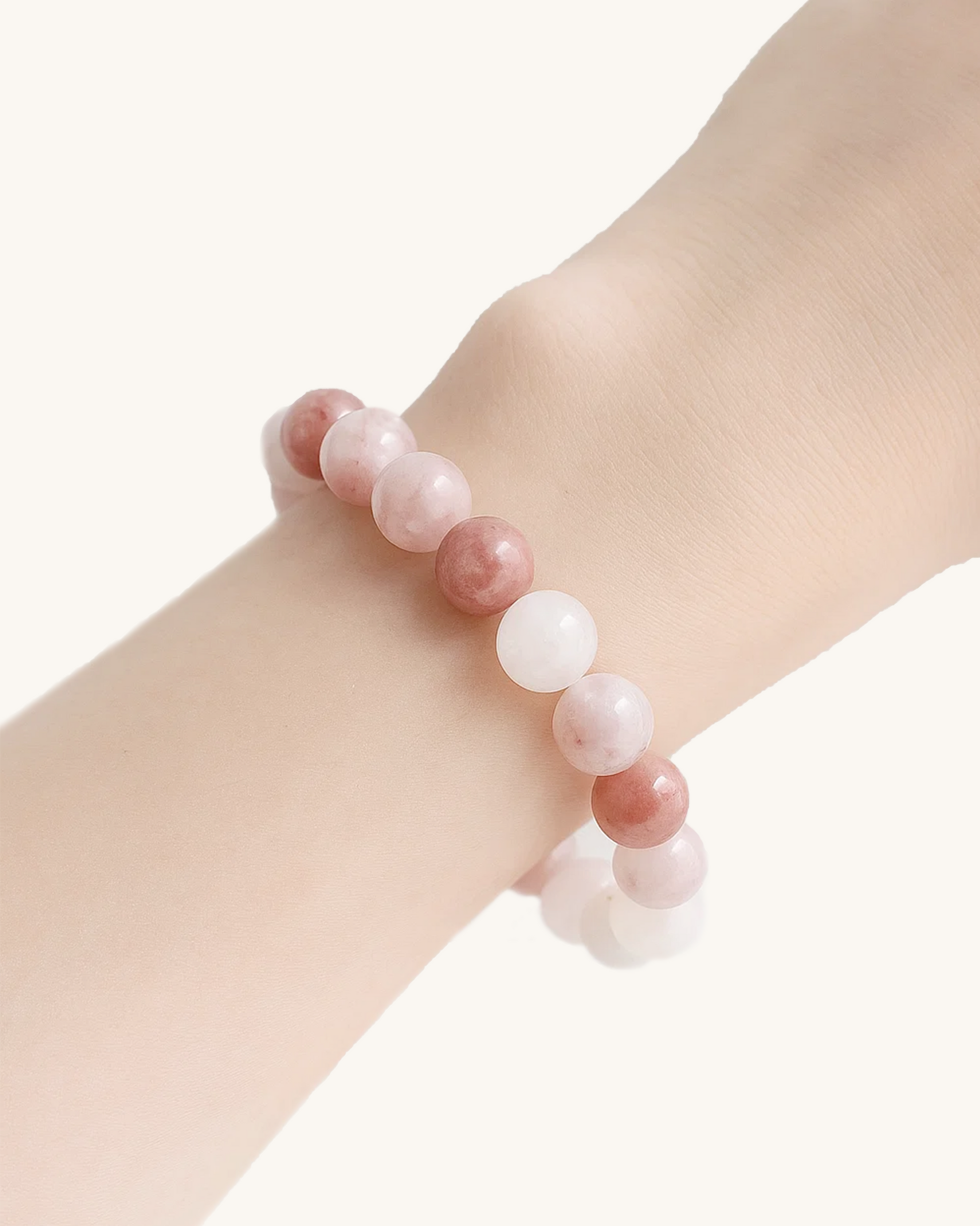 Softly glowing in hues of rose, blush, and translucent white, the Milky Rainbow Agate Bracelet embodies emotional tenderness and gentle harmony. Known for promoting emotional warmth, compassion, and inner peace, this 8mm bead bracelet is perfect for anyone seeking balance in both heart and mind. Its calming pastel tones make it a versatile, peaceful companion for daily wear.