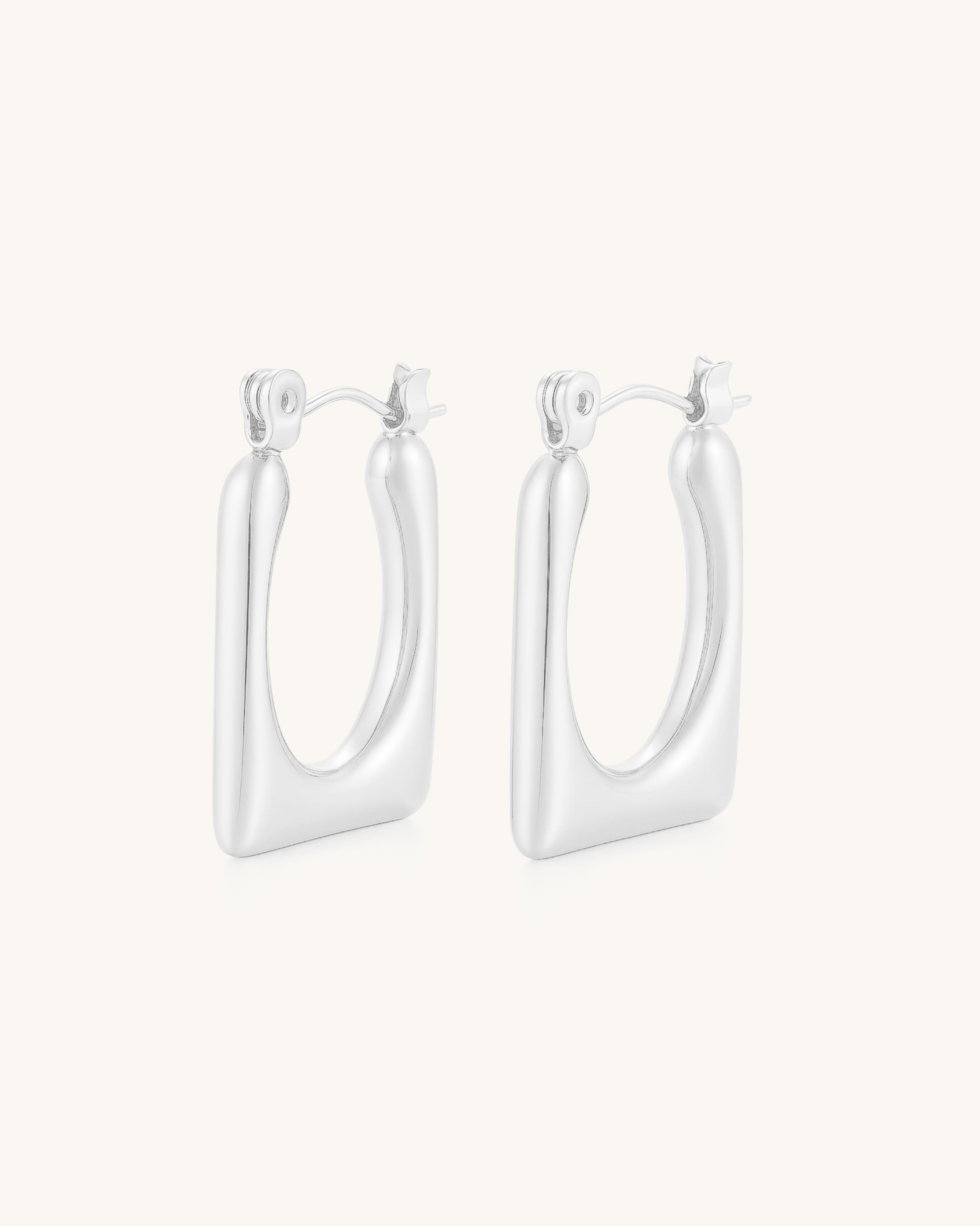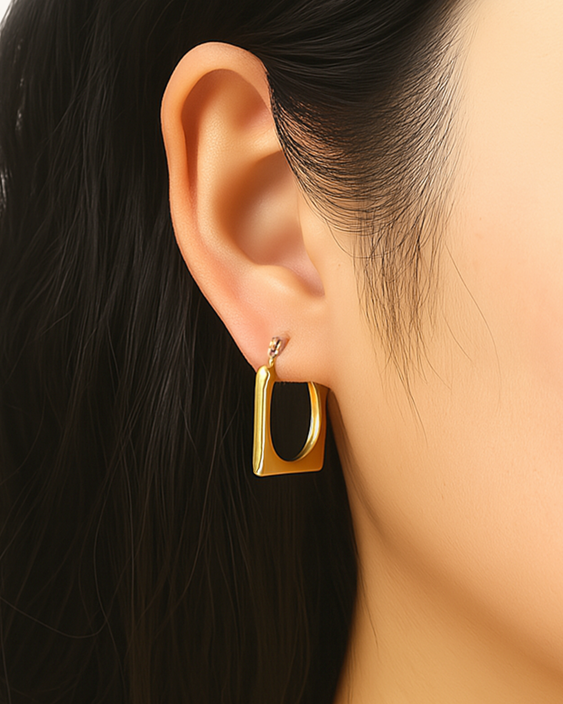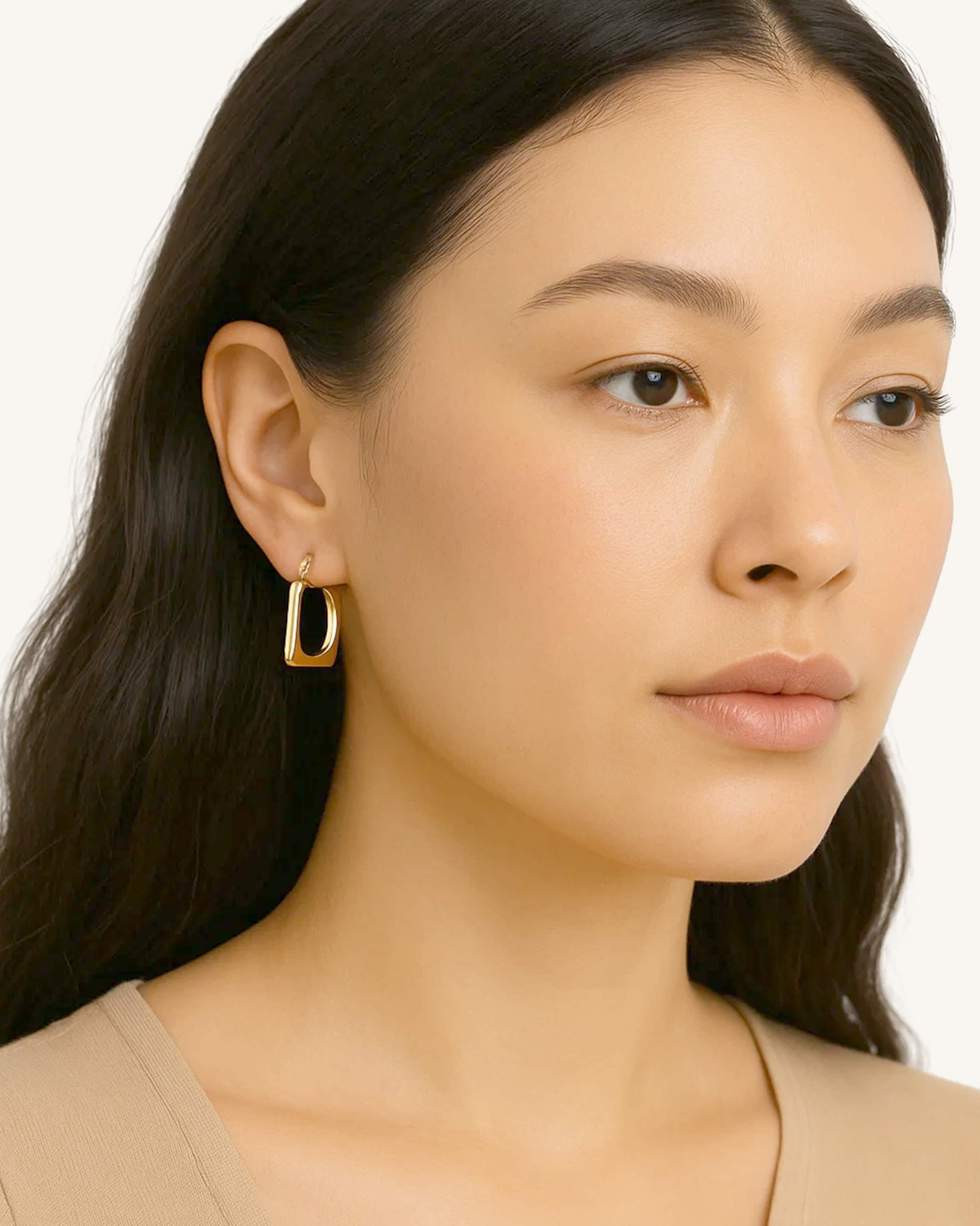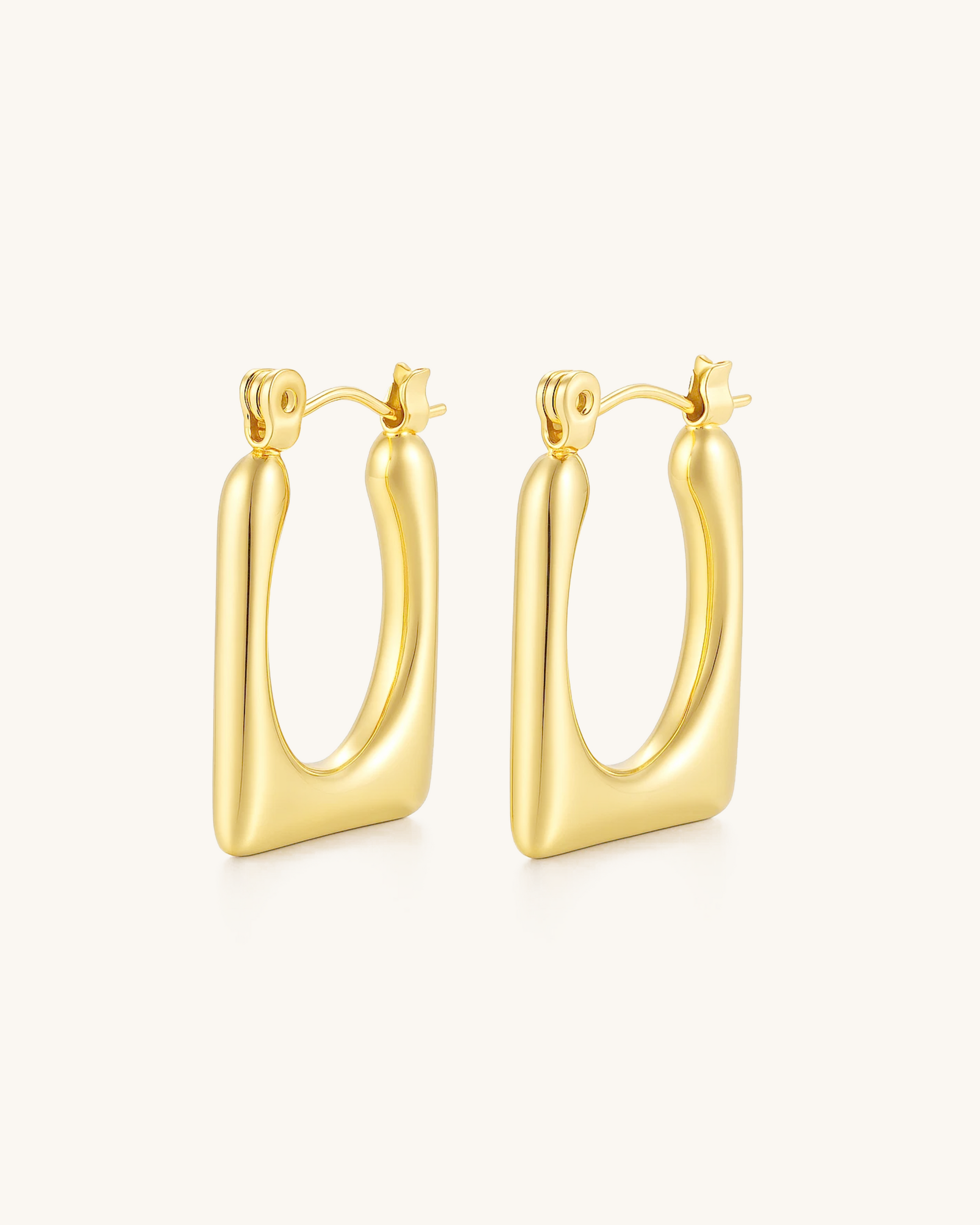 Bold and architectural, the Trapezoid Bold Hoop Earrings feature a sculptural trapezoid silhouette with smooth curves and a polished finish. Made from waterproof stainless steel and available in 18K gold or silver tone, these statement hoops offer a modern twist on classic shapes—perfect for elevating any minimalist look.