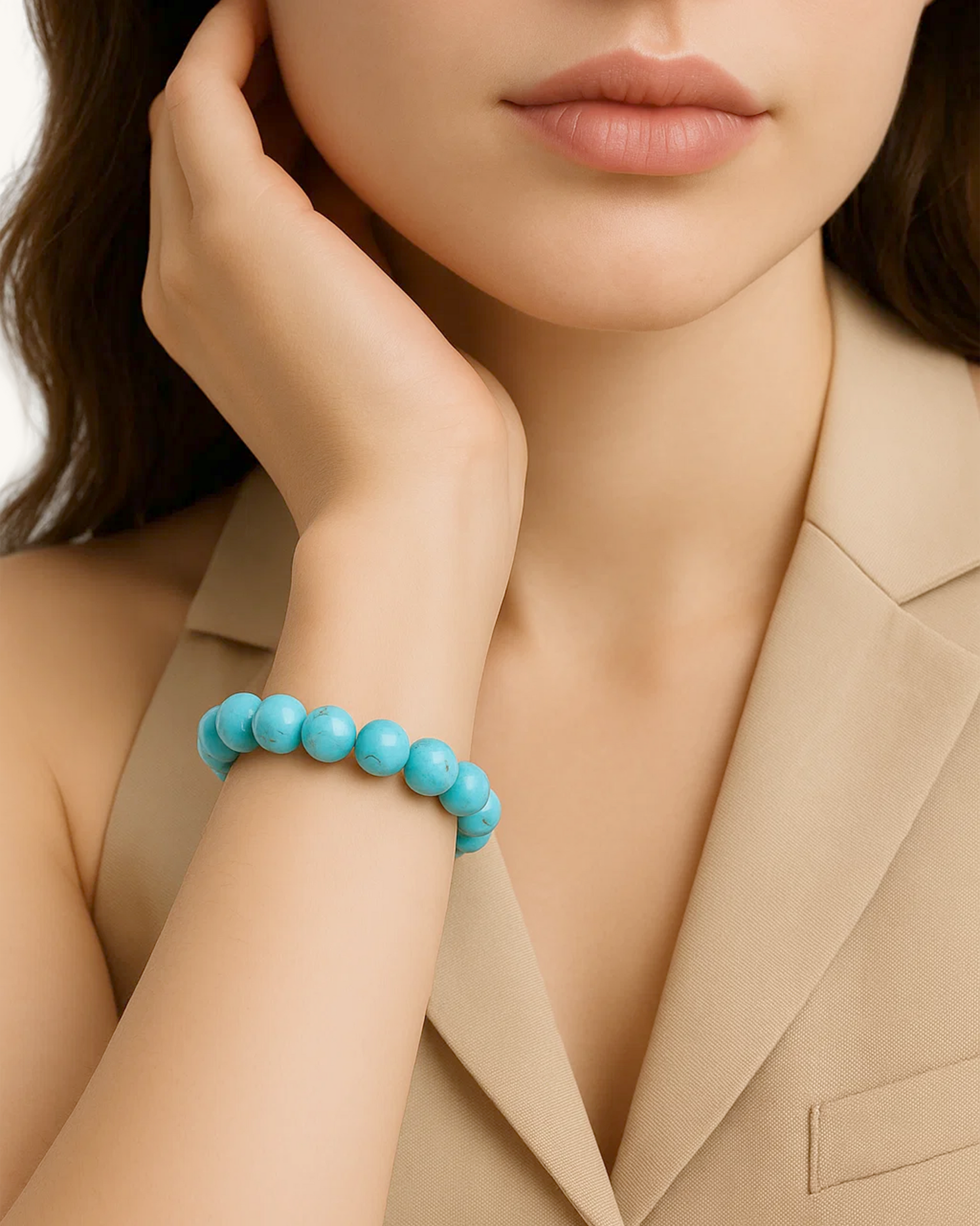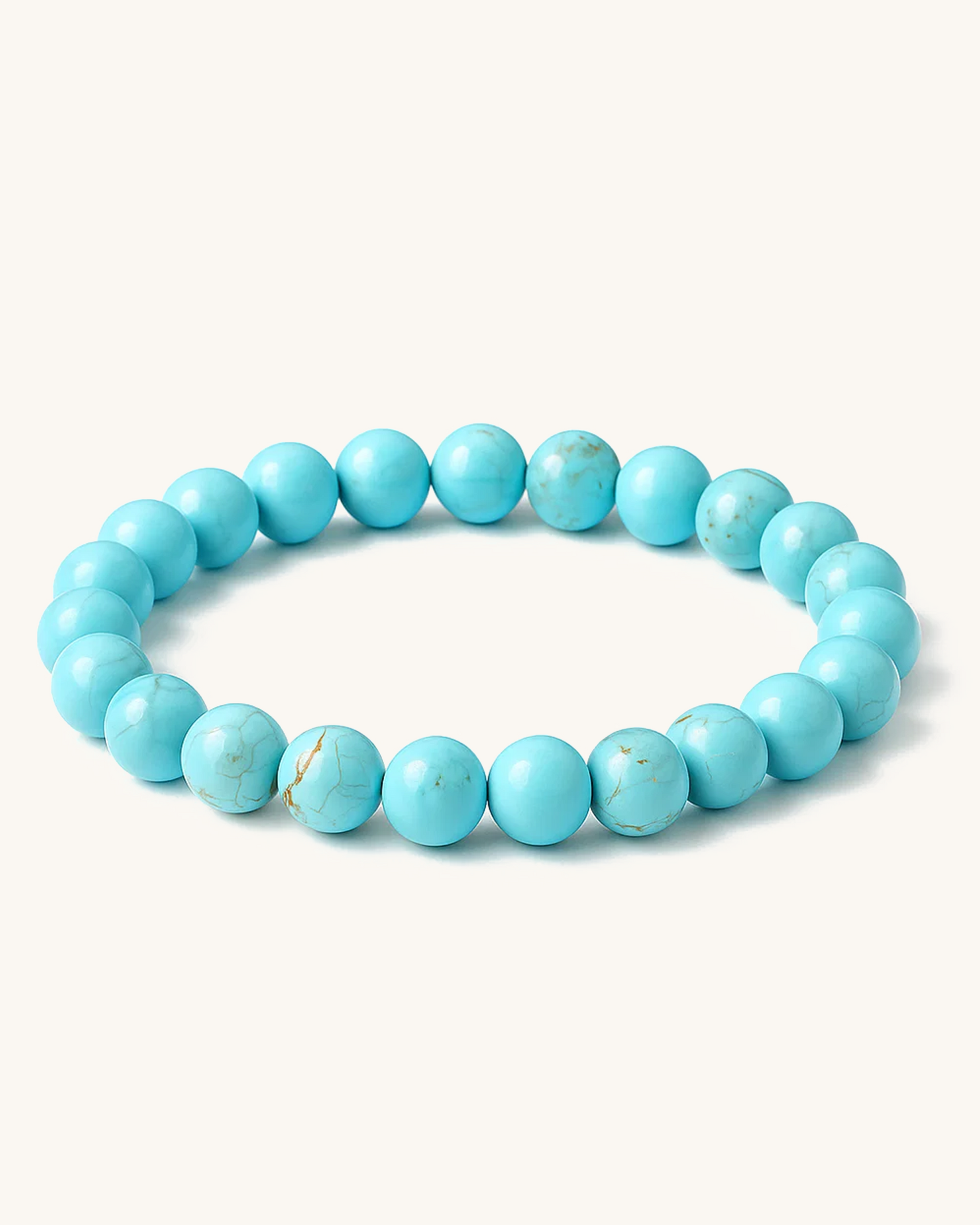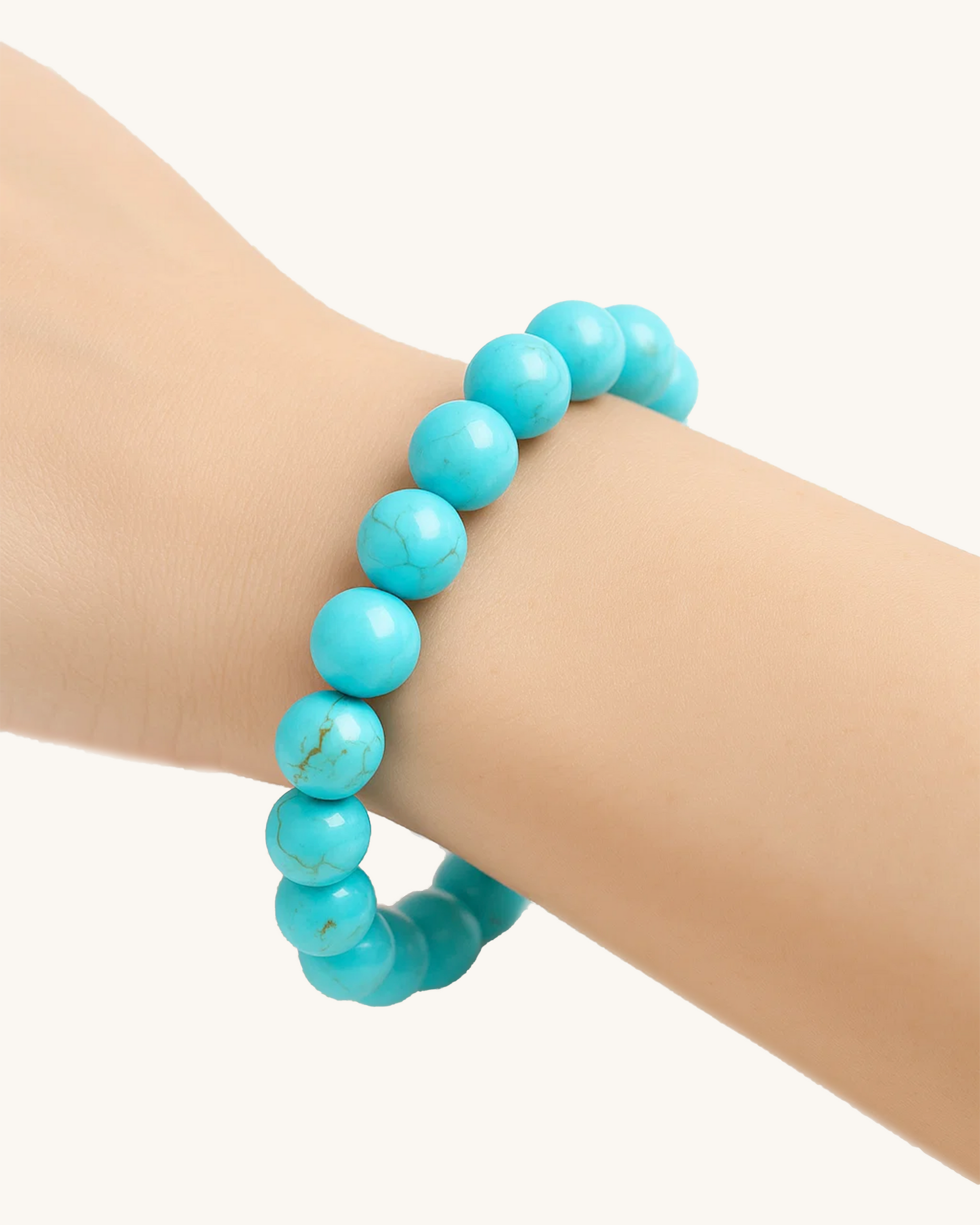 Radiating a calming ocean-blue hue, the Turquoise Sky Bracelet is known as a stone of protection, good fortune, and clear communication. This 8mm bead bracelet encourages self-expression, shields against negative energy, and inspires confidence in everyday life. A timeless and uplifting accessory with meaning.